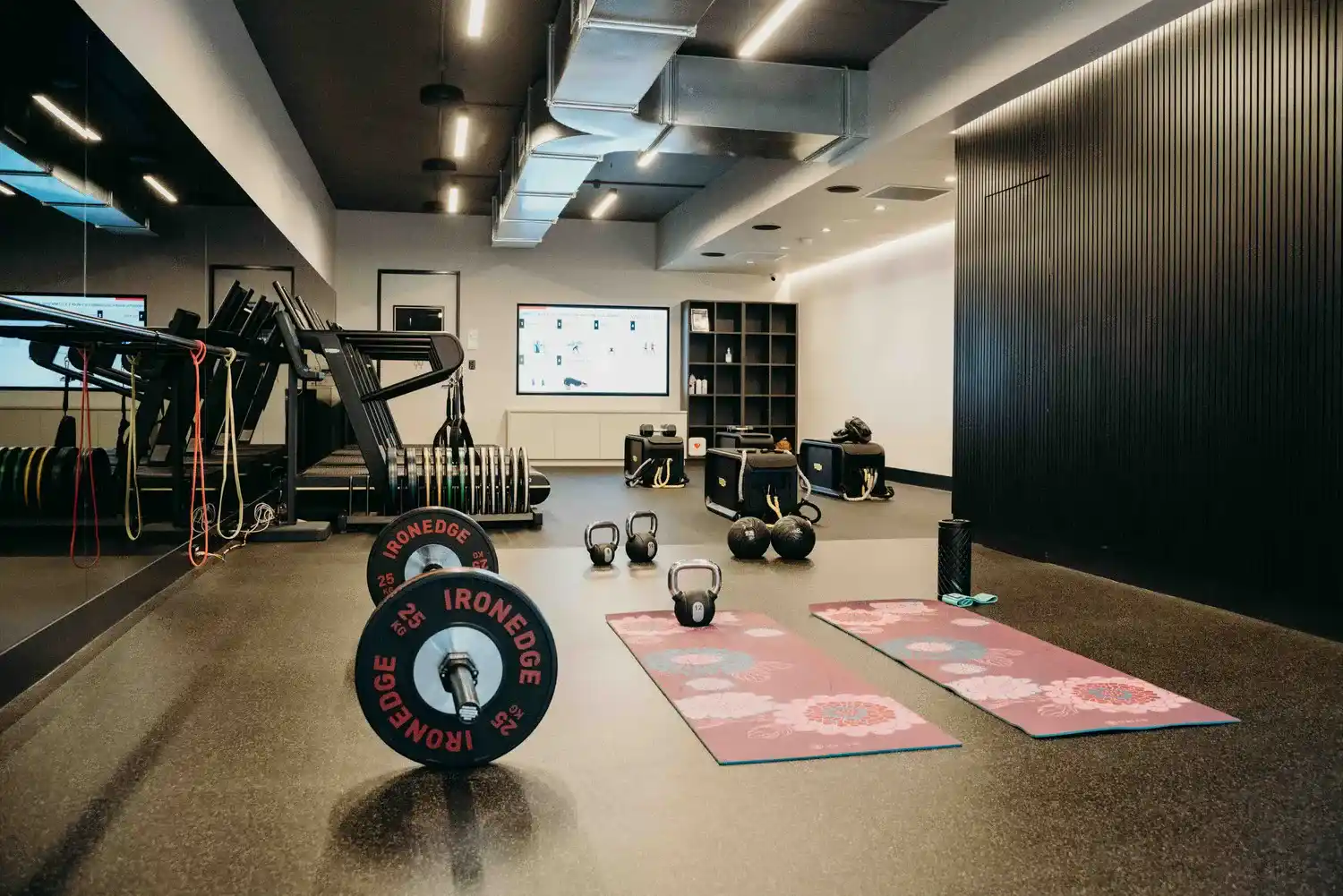 The ground floor is a boutique group fitness space designed for small classes of no more than 10 people. Sessions are led by experienced personal trainers and cover HIIT and strength circuits, box fit, yoga, Zumba, and seniors classes, with rehab classes also available for those working through injury or returning to training after a break. Heart rate technology, virtual displays and Technogym equipment give the space a more considered feel than a standard group fitness room.